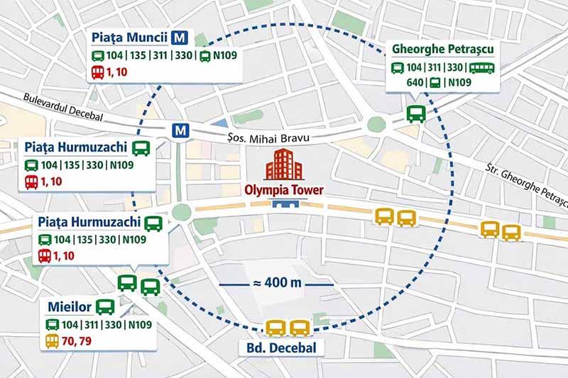 Clinica RecuNova este situată pe Bulevardul Decebal nr. 25-29, în clădirea Olympia Tower, în inima Sectorului 3, București. Suntem ușor accesibili cu transportul în comun.